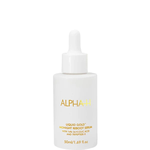 Combining an innovative fusion of glycolic acid and granactive retinoid, Alpha-H Liquid Gold Midnight Reboot Serum boasts an advanced formula that helps to resurface skin overnight for a visibly radiant complexion.