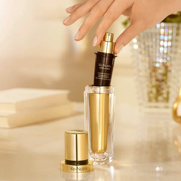 A refill for your existing diamond-faceted bottle, Estée Lauder’s Re-Nutriv Ultimate Diamond Transformative Brilliance Serum seeks to target six skin concerns: radiance, pores, age spots, tone, firmness and elasticity.