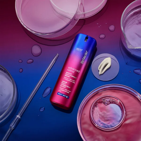 StriVectin’s Advanced Retinol Nightly Multi-Correct Serum is formulated to reduce the appearance of fine lines, textural irregularities, pores and dullness. Powered by NIA-114™, a patented form of niacin designed to enhance retinol efficacy, the serum promotes visibly radiant and evenly-toned skin.